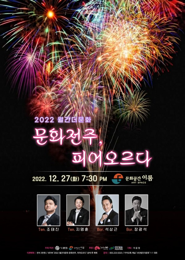 ○ 주요내용 : 전 세계적인 보건 위기 속에서 3년여 동안 코로나19로 힘들었던 시민들에게 그동안 잘 견뎌냈다는 위로와 함께 희망찬 2022년 열정을 불어넣어 줄 음악회를 개최함으로써 문화적으로 풍요로운 지역사회를 조성하고 지역 문화예술인들의 문화예술 활동을 통해 지역의 문화적 가치를 생산하고자 한다.