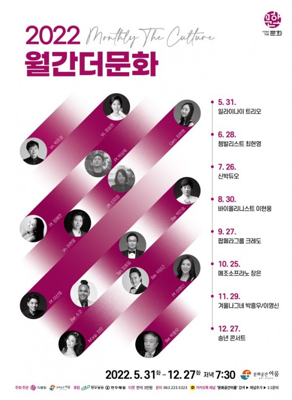 ○ 주요내용 : 지역민들의 고퀄리티 공연 관람 요구 의견을 반영하여 국내외 활발한 활동 중인 예술가들을 초청하여 매월 정기적인 콘서트를 개최함으로써 문화향유 기회를 확대하고자 함